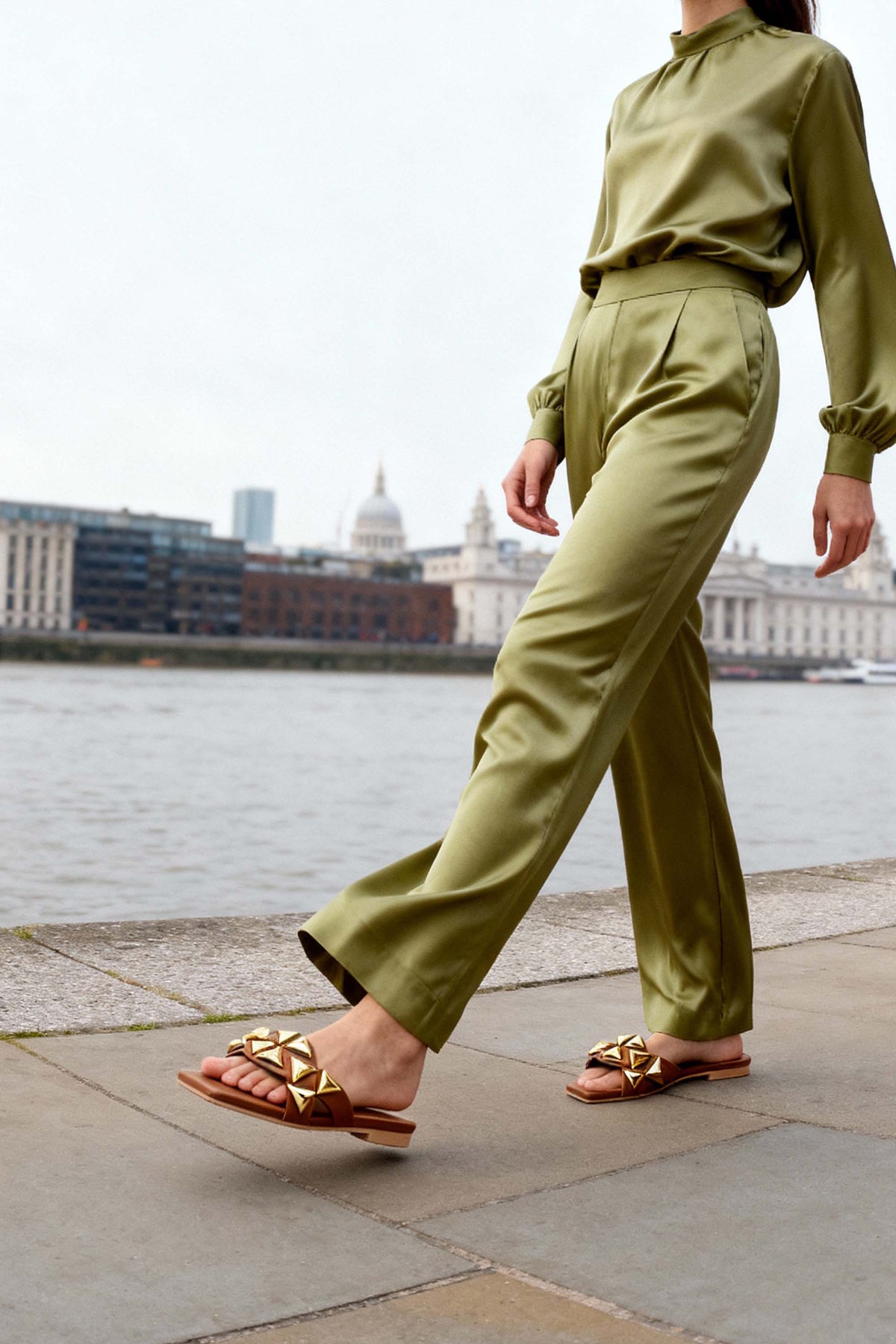 Designed for both comfort and flair, these tan cross flats feature a soft fit and 3D gold triangles on top that add a trendy twist to your everyday wear.