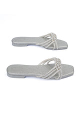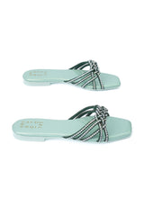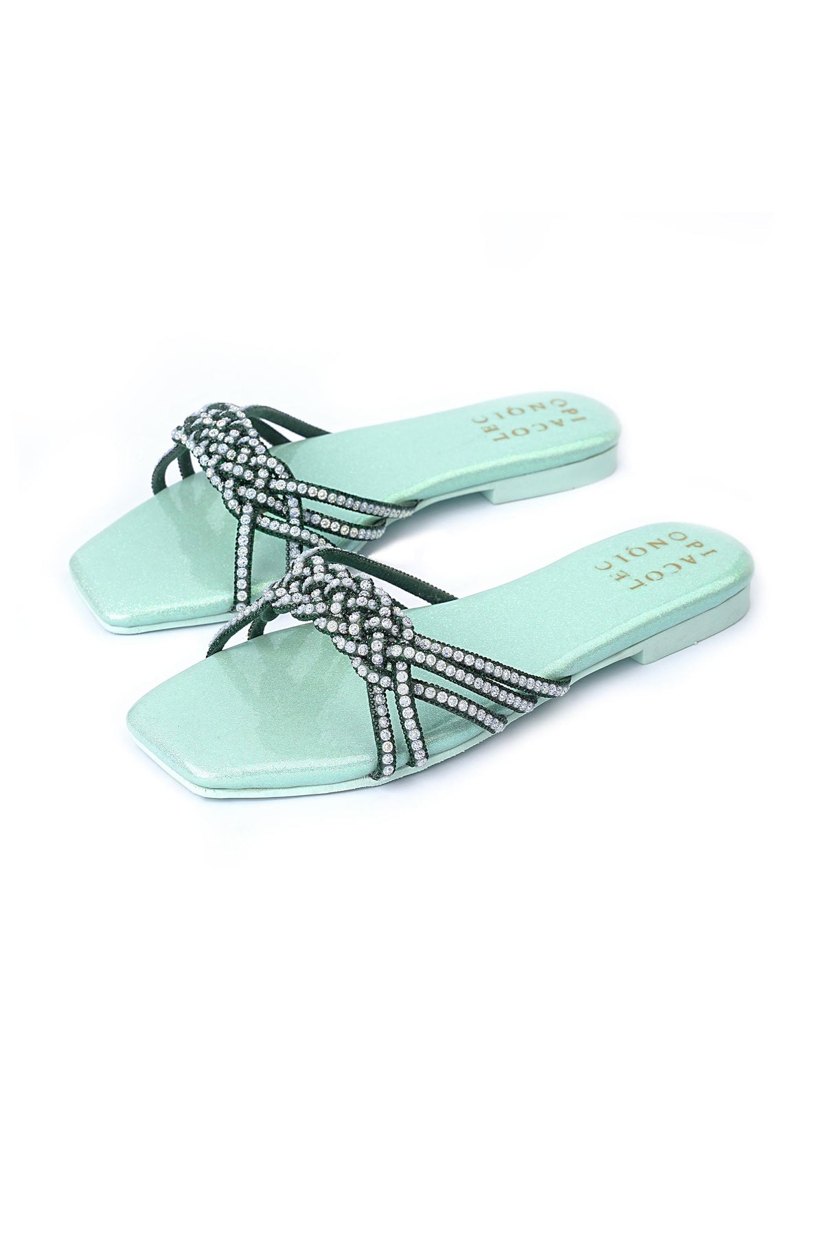 These chic green flats come with a fancy braided mesh upper and glittery accents for a festive finish.