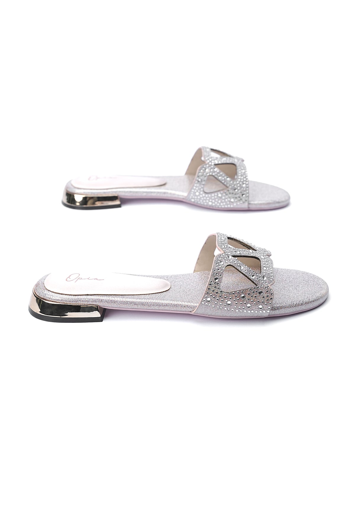- Rubber sole with elegant metallic heel detail