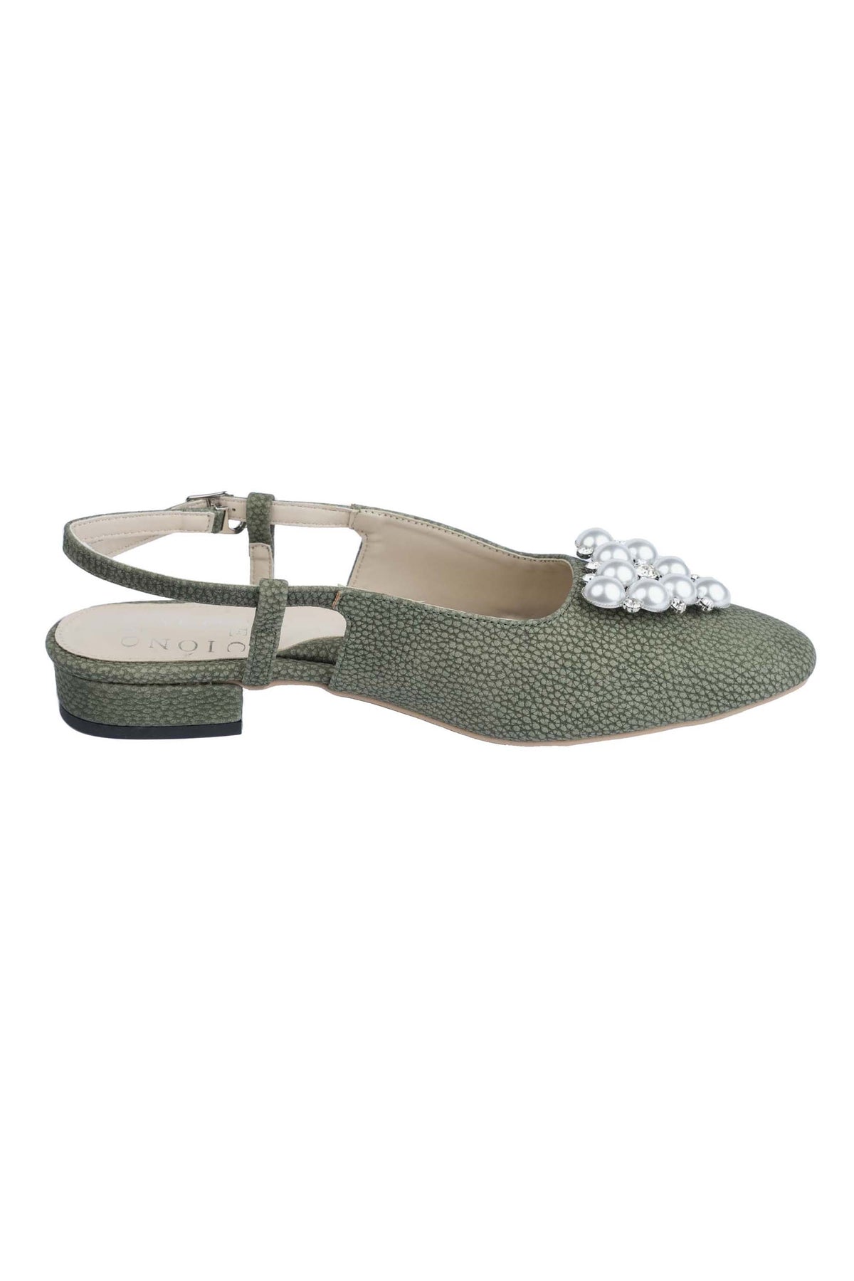 Designed for style and comfort, these green winter footwear with 22mm heel feature a milled faux leather upper with pearl buckle details. The double-foam padded insole ensures exceptional cushioning for all-day comfort.