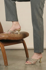 Make an entrance in these eye-catching beige heels, adorned with interwoven rhinestone straps. The delicate webbed design not only shines brilliantly but also ensures a secure, comfortable fit.