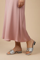 Shine at every step with this silver pair featuring a fancy stone buckle and unique heel design. This footwear will make heads turn and is ideal for festive and formal occasions.