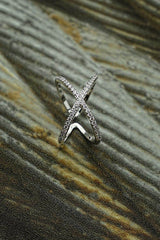 Simple in design, this minimalistic band has a beautiful array of zircons on top giving a delicate look.