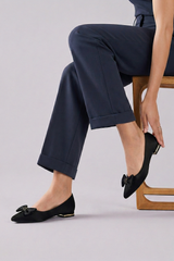 These casual flat black pumps feature a smart vegan leather upper accented with a bow detail, which offers a graceful everyday look. Lightweight and comfortable, they are perfect for daily wear.