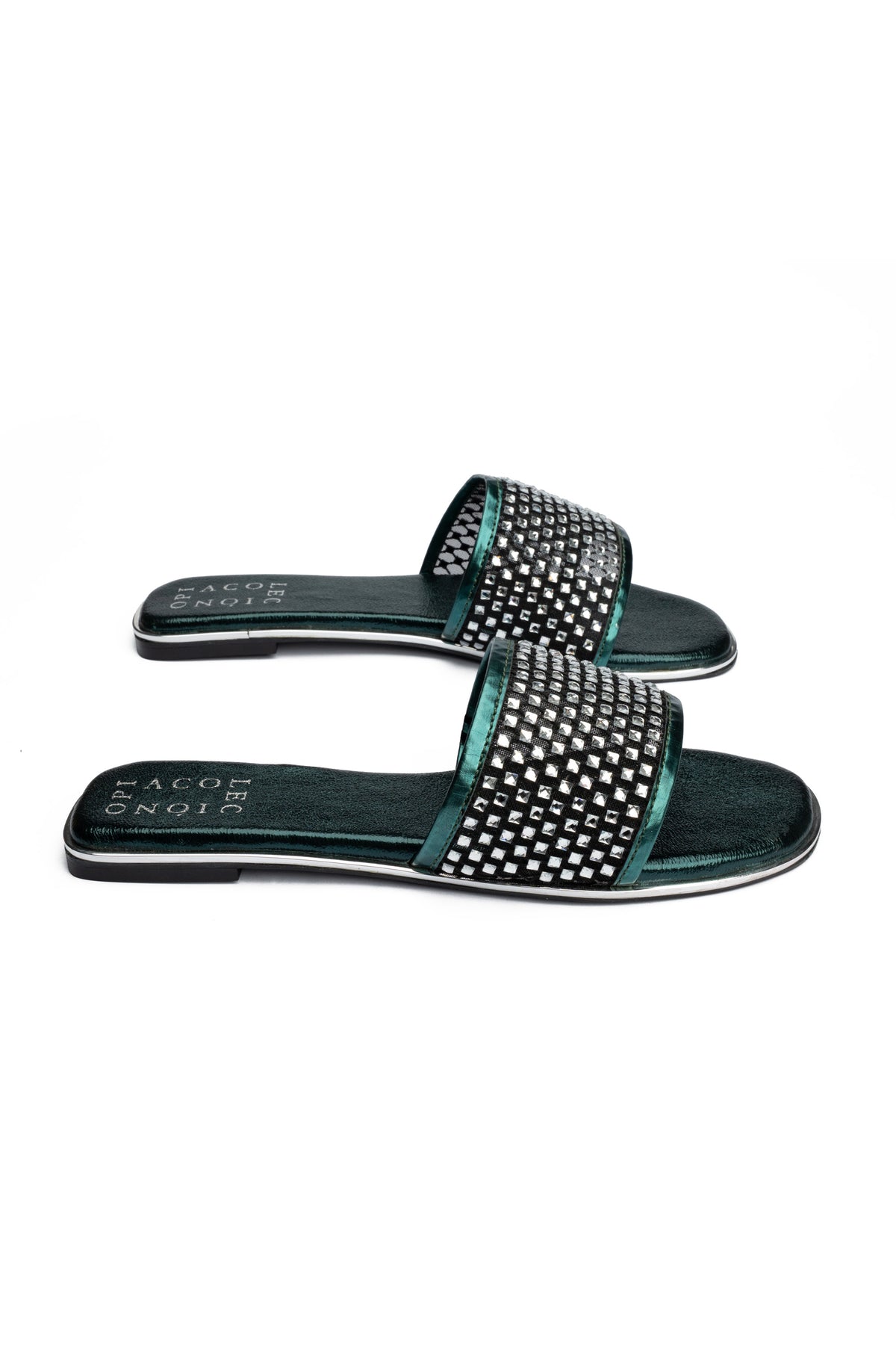 Designed with elegance in mind, the shimmer and subtle elegance give these green slip-ons a fancy vibe.
