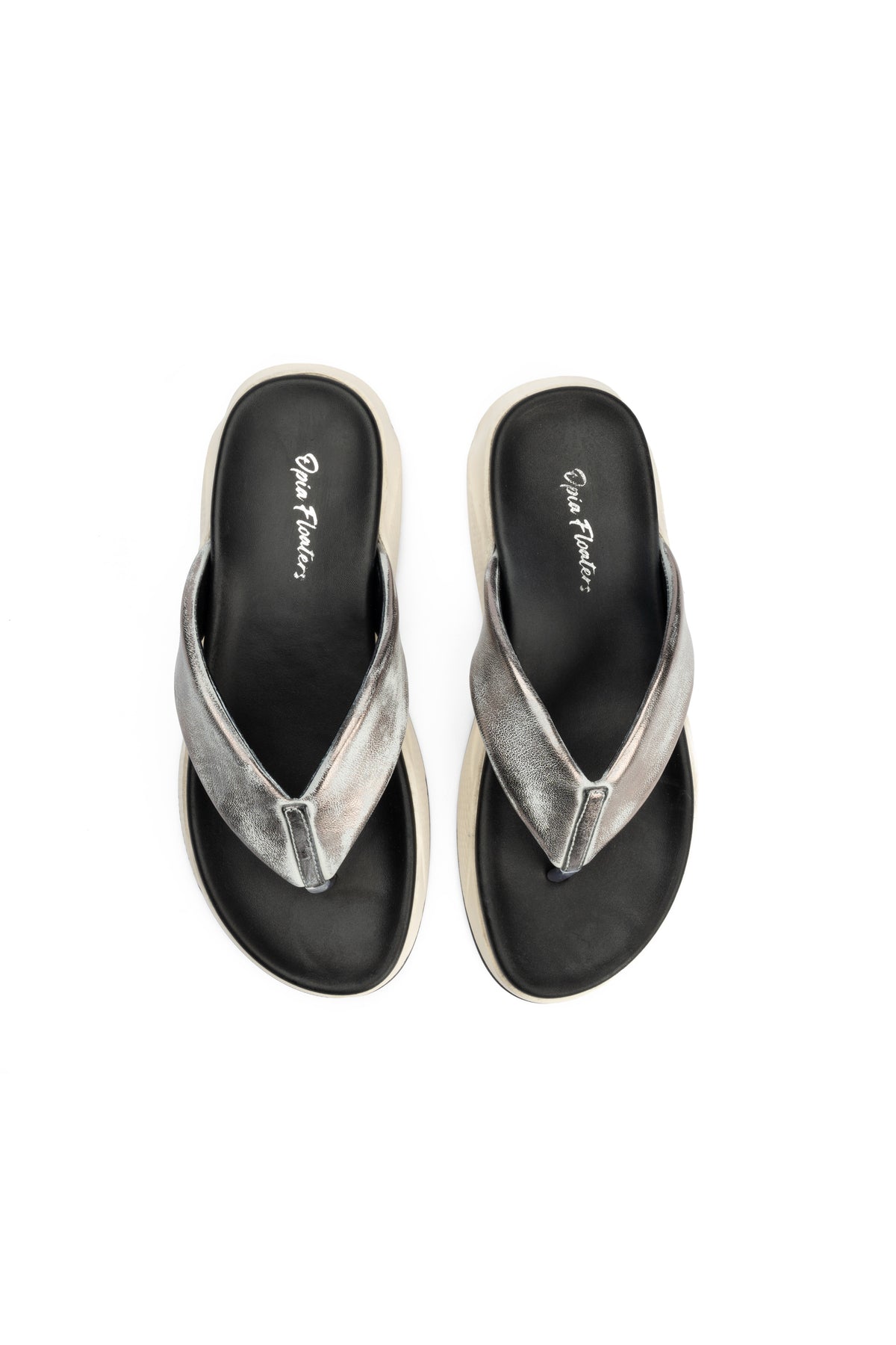 These black medicated ladies’ flat slippers are designed to provide lasting comfort with a refined everyday look. The two-tone vegan leather upper and cushioned support make them ideal for all-day wear and relaxed movement.