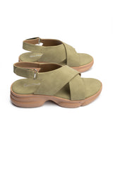 Designed for everyday ease, these green ladies’ comfort flat sandals feature a soft suede vegan leather upper with a secure Velcro closure for a customised fit. The medicated insole and lightweight sole make them ideal for long hours of comfortable wear.