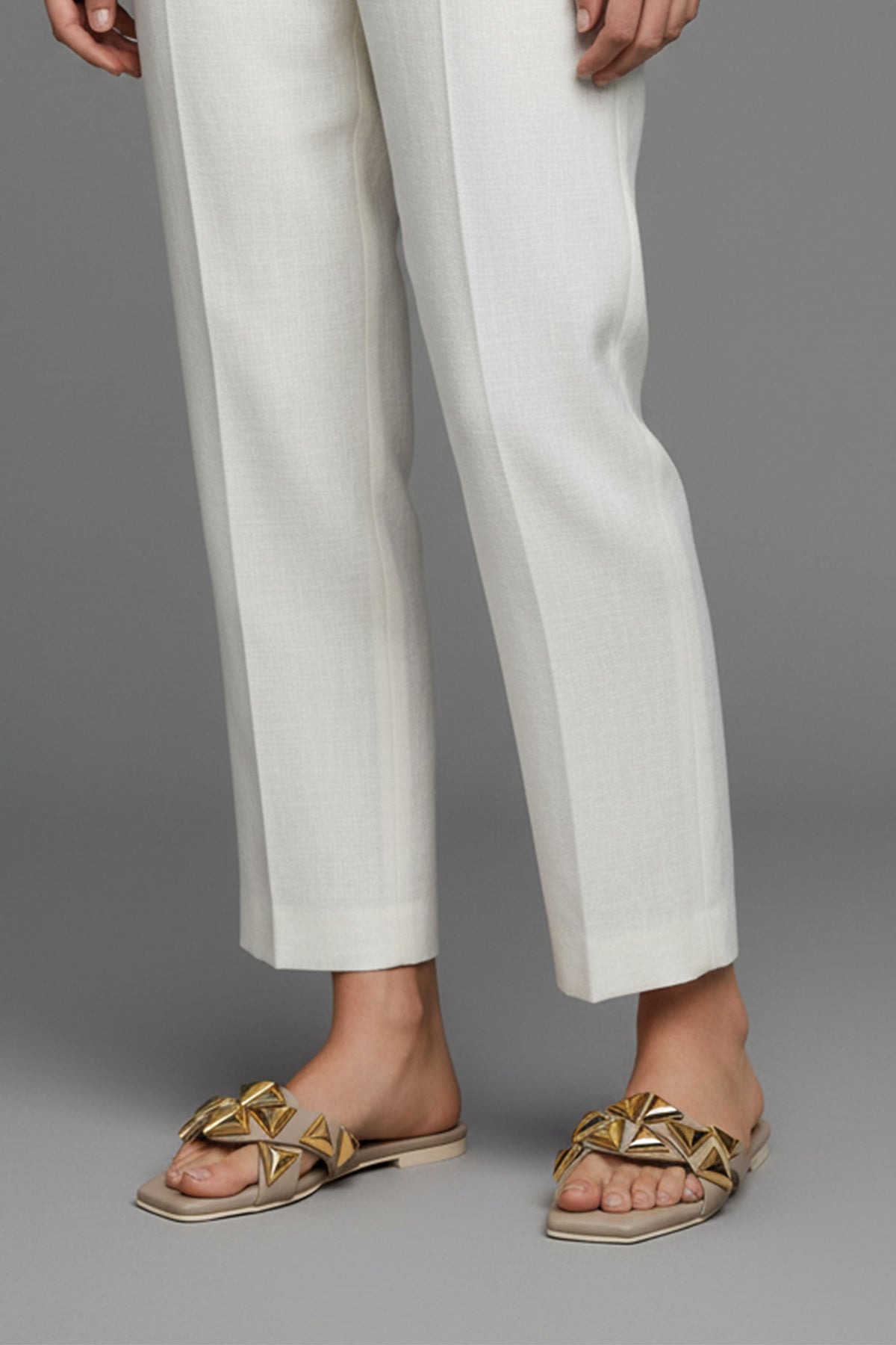 Designed for both comfort and flair, these beige cross flats feature a soft fit and 3D gold triangles on top that add a trendy twist to your everyday wear.