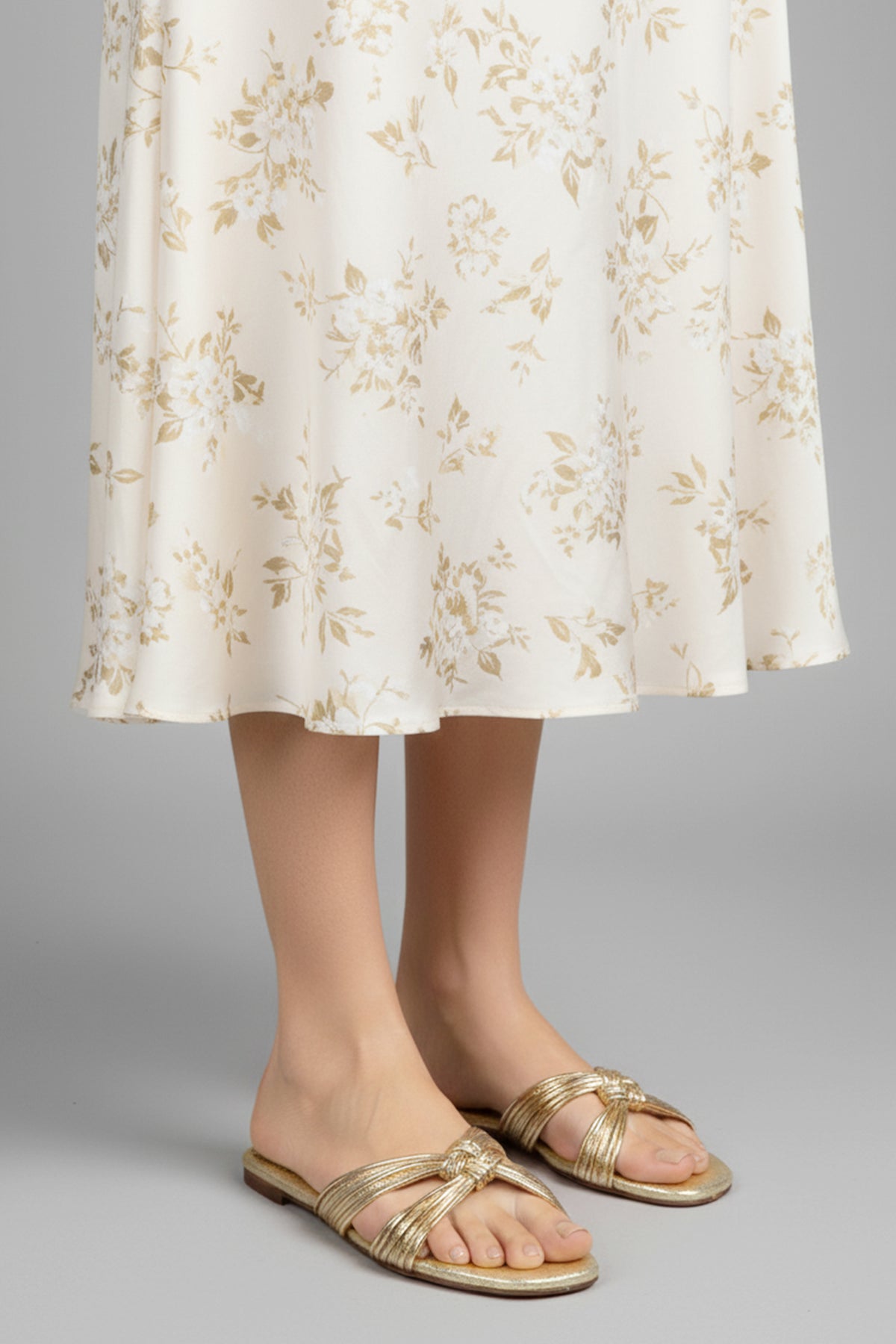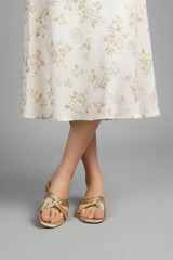 The shimmering gold color of these flats are what set them apart, the knot smartly tied on top is designed for the modern woman keeping the personality and style in view.