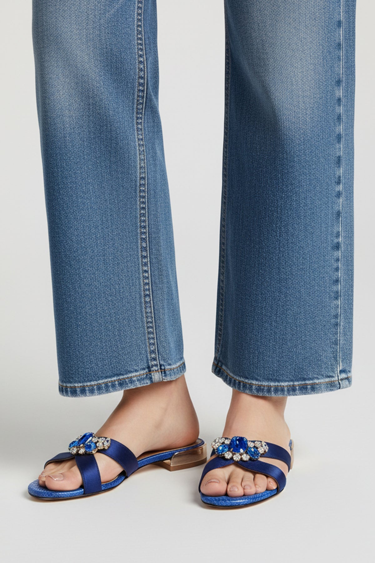 The satin finesse and detailed accents make these blue flats perfect for dressy days.