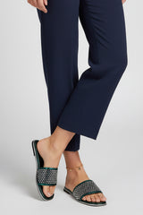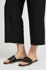 This black flats features a shimmering net upper embedded with stones for a chic evening look. This footwear provides comfort-padded insole and rubber sole to keep you going in style.