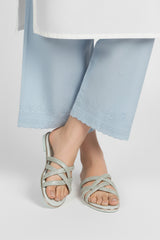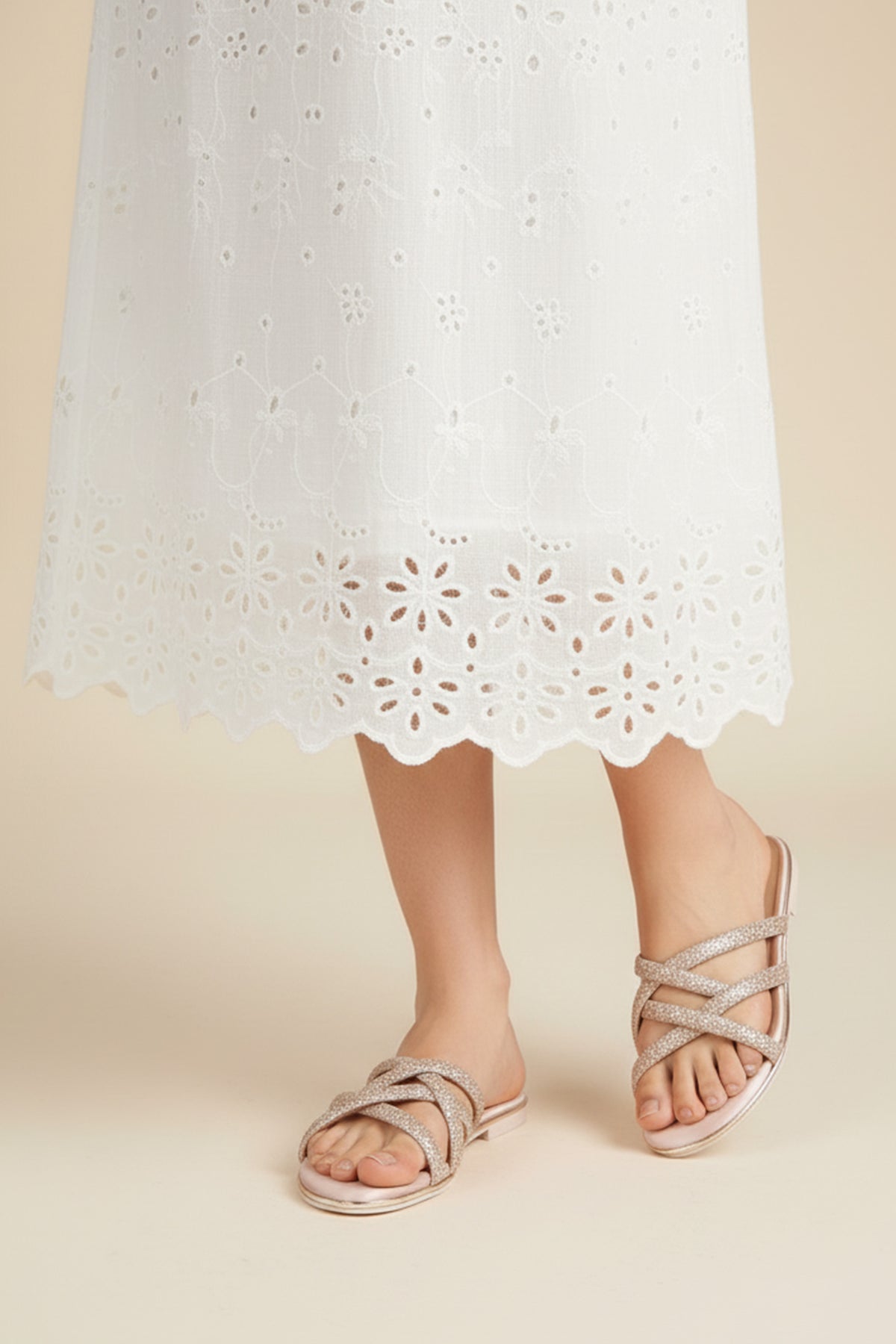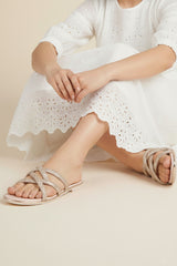 Our dazzling powder pink flats feature a glitter-detailed faux leather upper with interlaced straps and an elegant golden welt offering the perfect blend of feminine charm.
