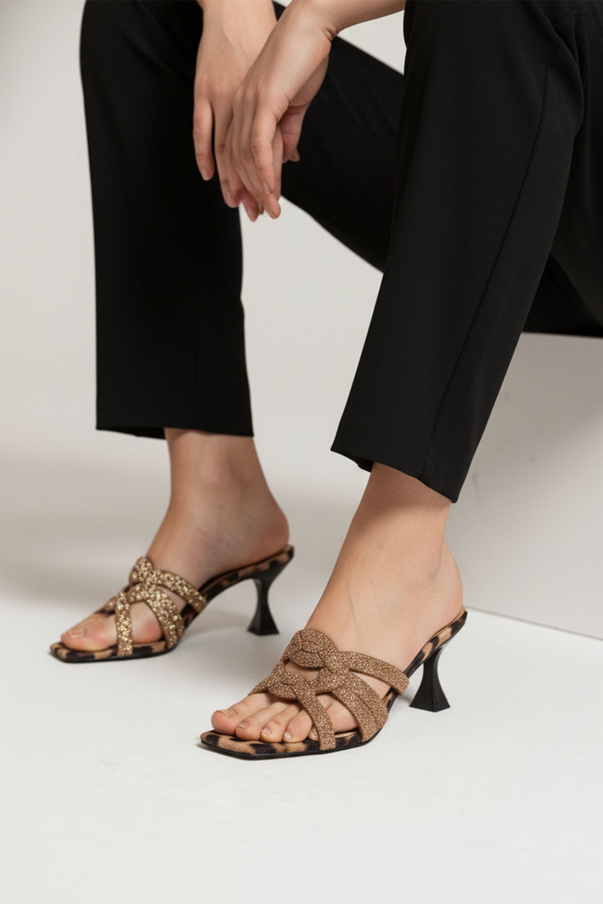 Show off your wild side with these striking leopard-print brown heels, topped with a subtle shimmer. Their bold design balances style and sophistication, perfect for stepping out in confidence. Rock the look and make a statement by blending elegance with a wild vibe.