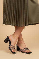 A modern classic, these black heels combine glittery vibe with a contemporary mesh design for statement-making footwear.
