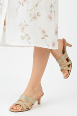 Glam up in these fancy black heels that are exquisitely adorned with rhinestone setting on top. These multi-shaded stones are ideal to uplift your festive outfits, all resting on a unique textured heel and sole.