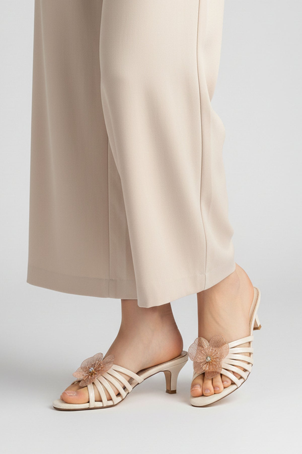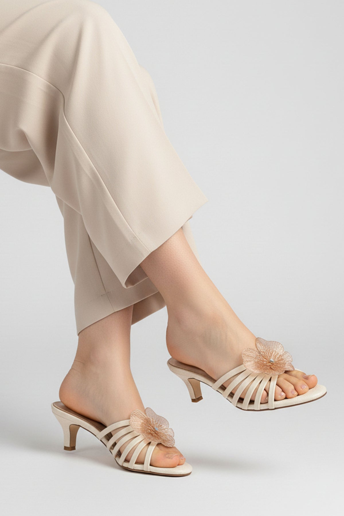 Add elegance to every step with these stunning white heels, designed with delicate straps and a charming flower embellishment on top for a feminine floral vibe.