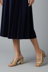 - Metallic crocodile-textured faux leather insole adds a chic touch.