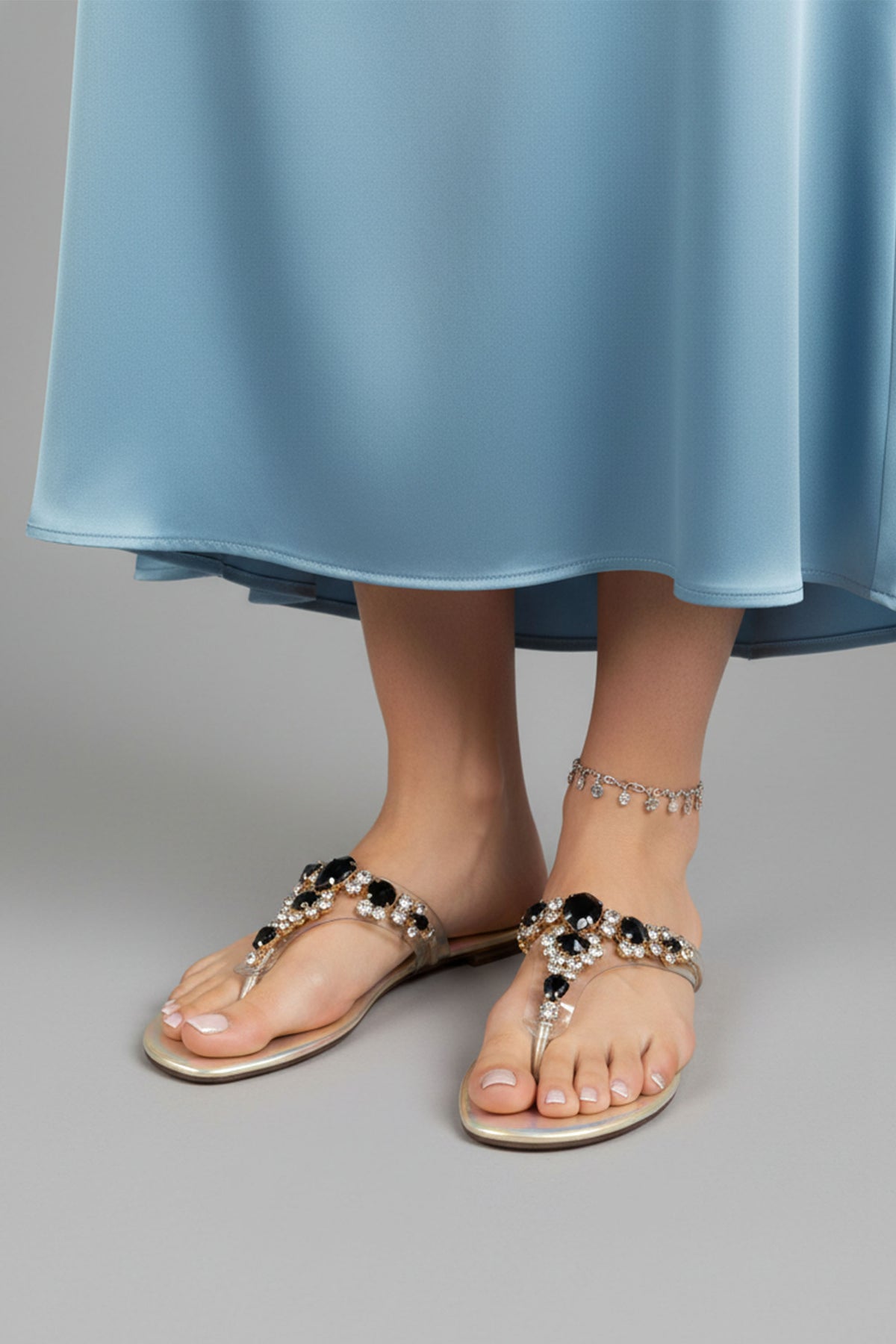 OPIA 9997 GOLD sandal with black stones and zircon embellishments on a multicolored shiny base