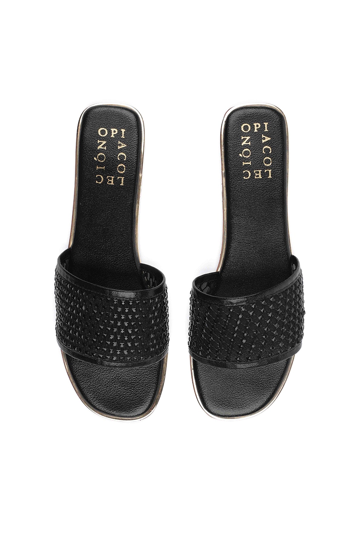 This black flats features a shimmering net upper embedded with stones for a chic evening look. This footwear provides comfort-padded insole and rubber sole to keep you going in style.