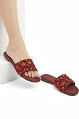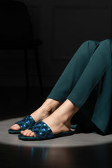 These Dark Green flats featuring a sequin-detailed upper and satin insole, offering a balance of design and comfort.