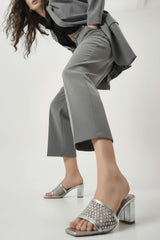 - Metallic crocodile-textured faux leather insole adds a chic touch.