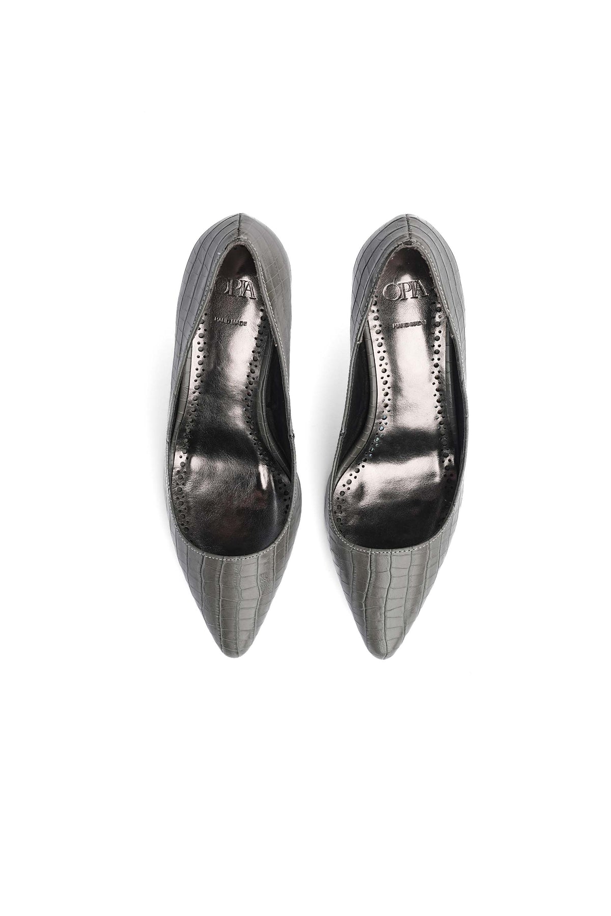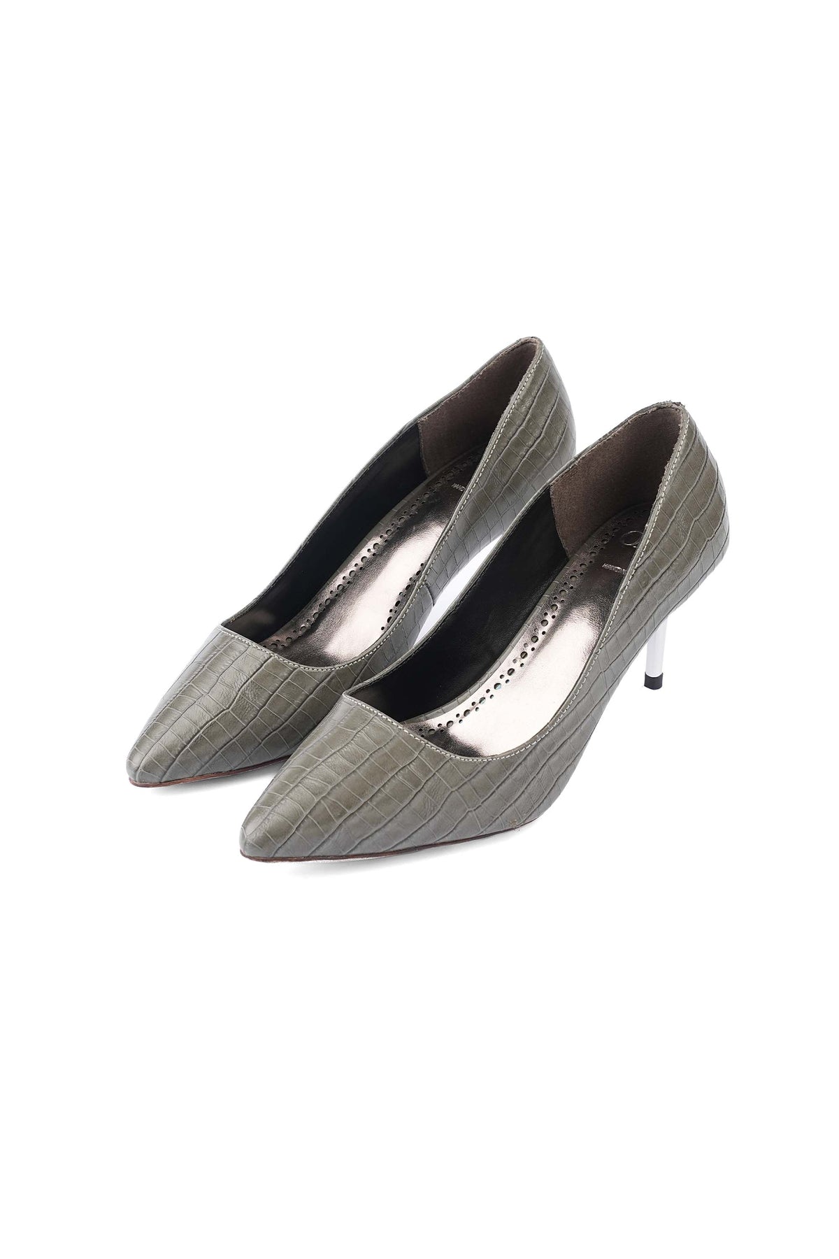 Elegant in design, these grey court shoes feature a crocodile-textured faux leather upper paired with a smart stiletto heel of 75mm. This footwear is designed for all-day comfort and a premium, polished finish.