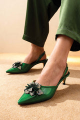 Chic and contemporary in design, these silver fancy ladies’ mules feature a two-tone plastic upper accented with fancy buckle details. The comfort padded insole and kitten heel (39 mm) pair modern design with sheer elegance.