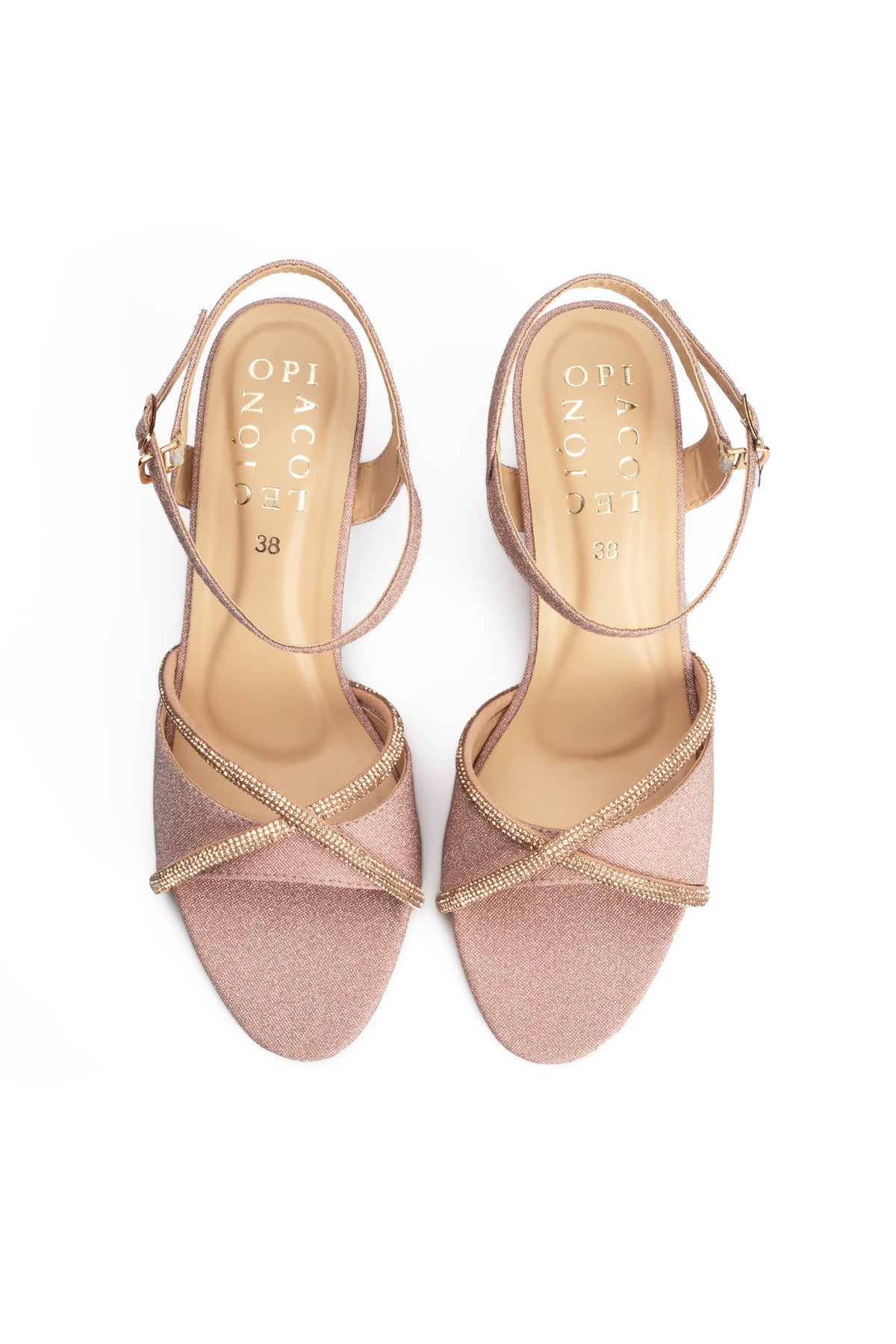 These stylish peach heel sandals blend smooth vegan leather with fancy mesh rope detailing for a refined yet modern look. It is designed to offer comfort and elegance making them ideal for festive and evening wear.