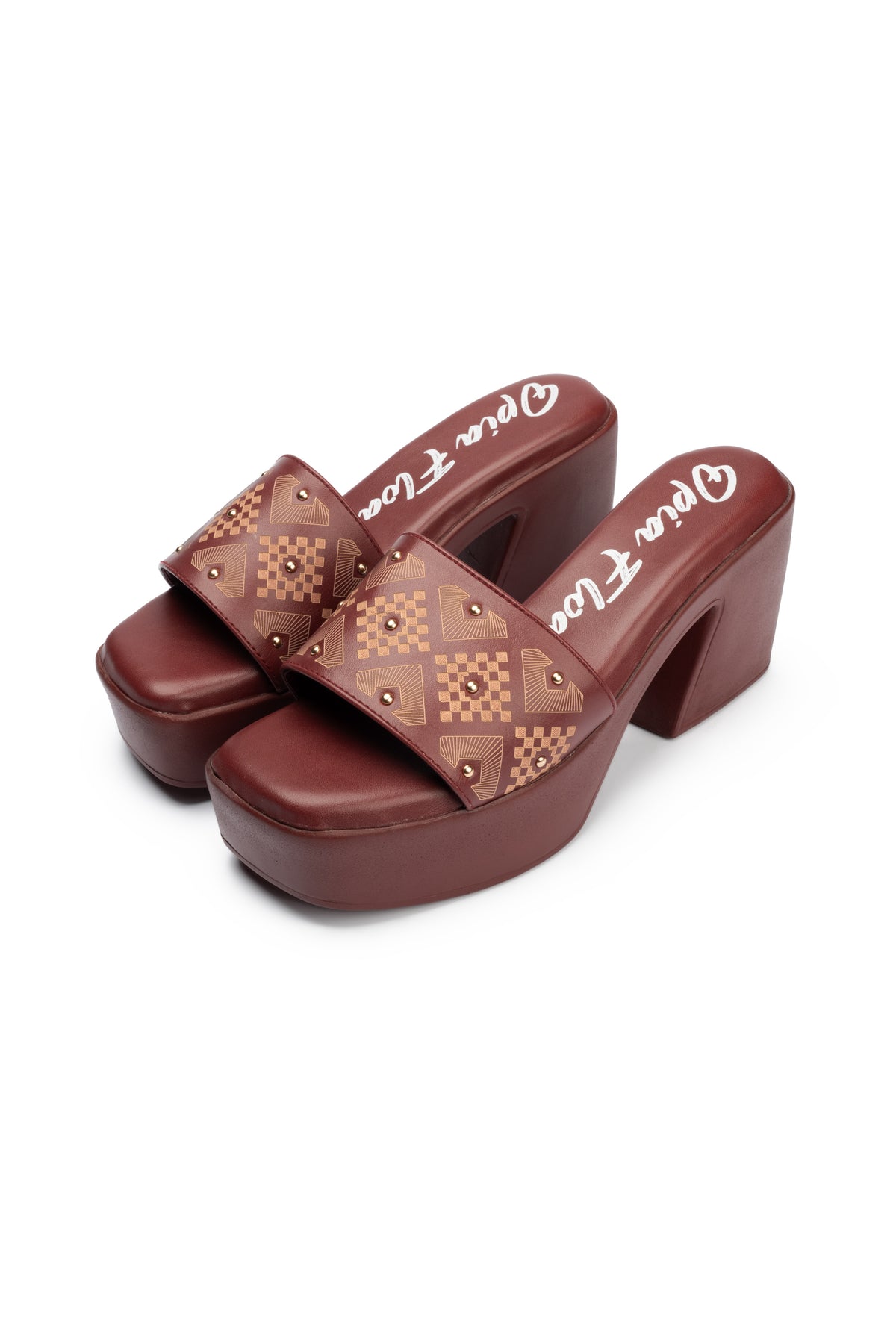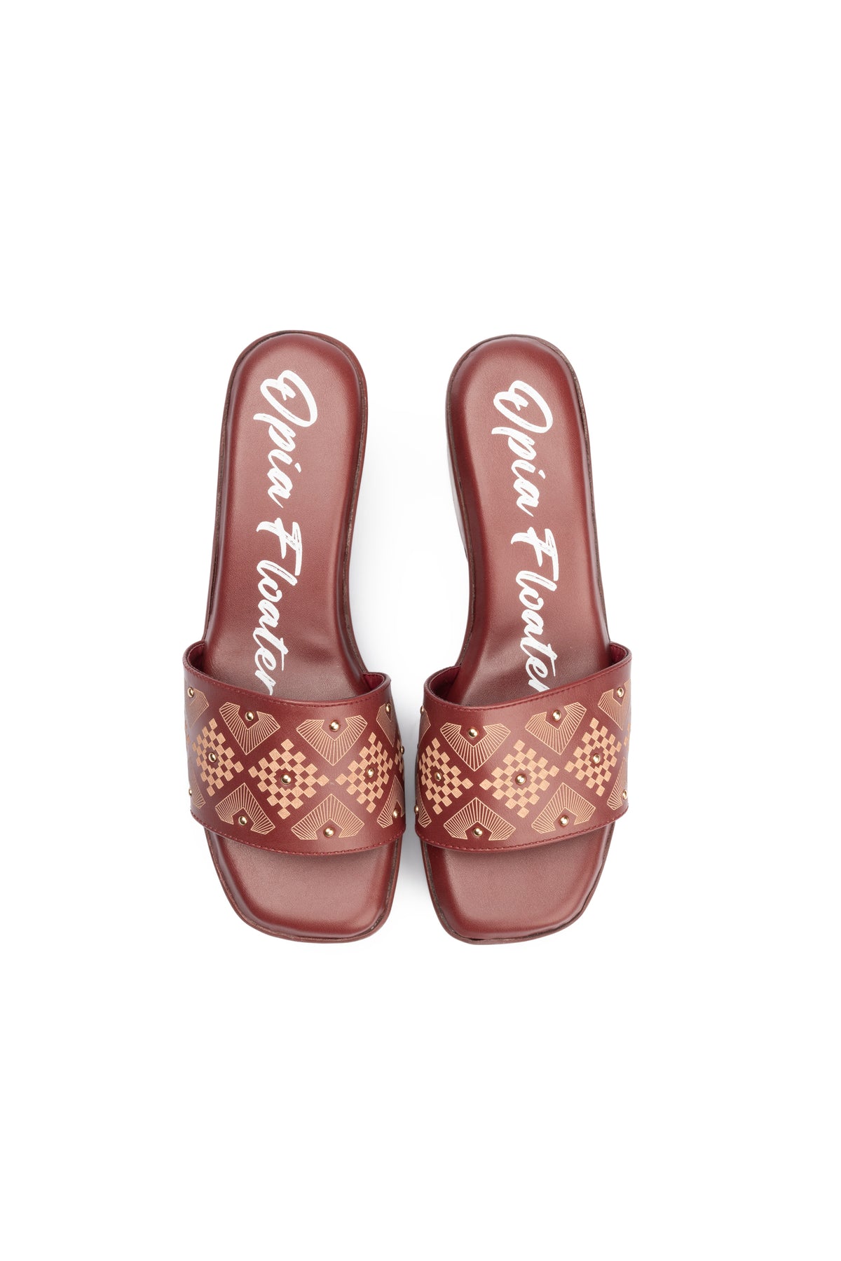 These stylish and comfortable maroon heel slides feature a vegan leather upper decorated with metal studs and elegant printing. The extra soft padded insole and supportive heel ensure all-day comfort paired with a fashionable vibe.