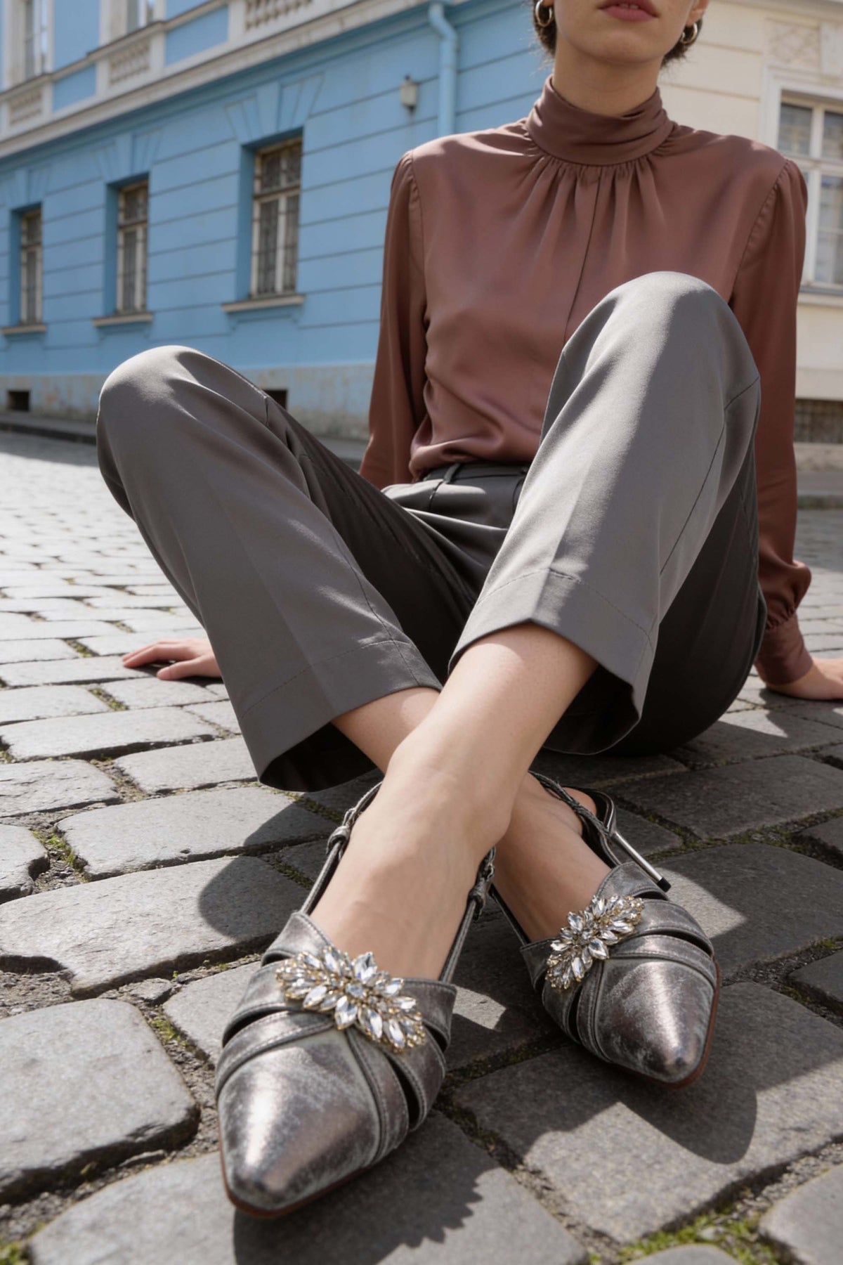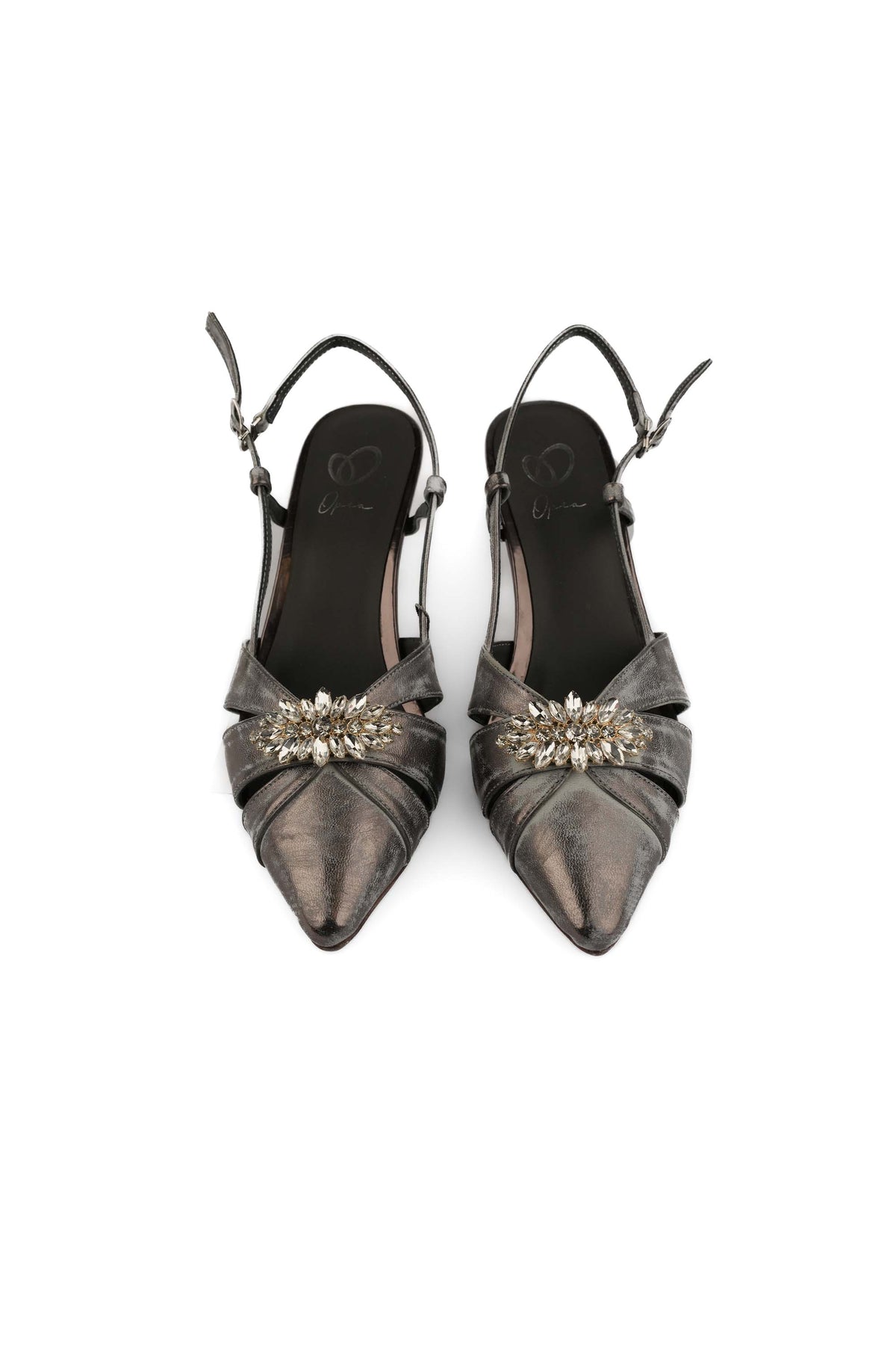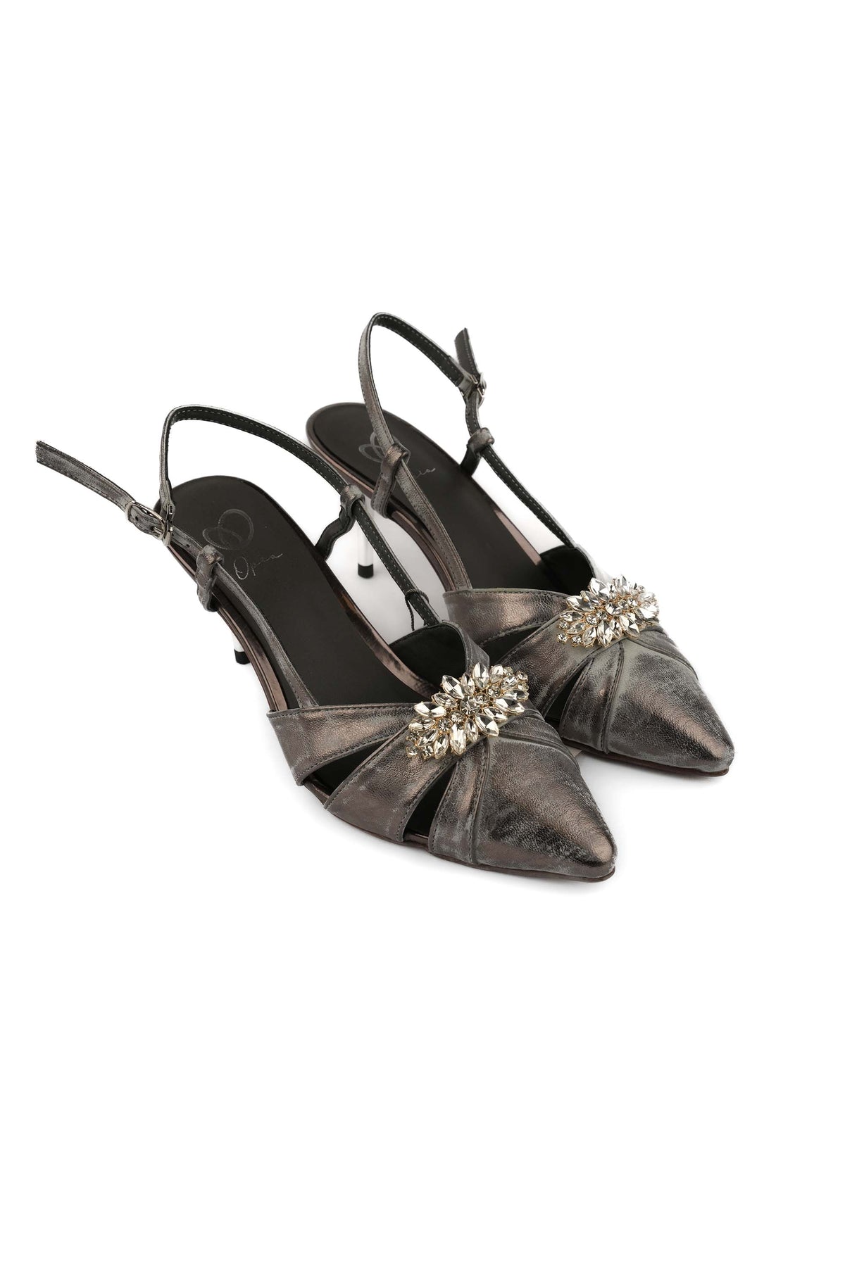 The eye-catching design of these grey ladies’ winter sandals have a two-tone metallic finish that is paired with premium stone buckle detailing. This 75 mm premium stiletto heel is designed to balance glamour with comfort. The exclusive outsole offers a secure fit and a graceful silhouette, ideal for festive evenings and formal occasions.